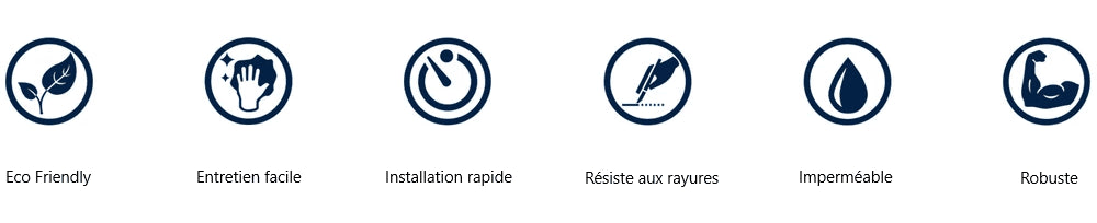 Les tâches, la saleté, le sel, les produits chimiques, etc., ne pénètrent pas nos tapis. Cela les rend faciles à nettoyer et à entretenir. Un rapide coup d'aspirateur ou un chiffon humide, suffisent à leur redonner leur éclat.